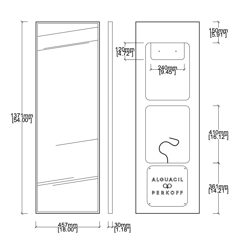Mirror dimensions: 54” Height x 18” Width x 1.18” Depth (1371 x 457 x 30mm)