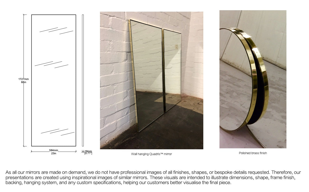 Mirror dimensions: 68” Height x 23” Width x 0.71” Depth (1727x 584 x 18mm)