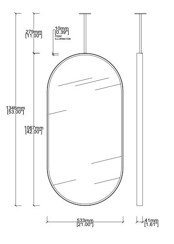 Mirror dimensions: 42” Height x 21” Width x 1.61” Depth (1067 x 533 x 41mm)