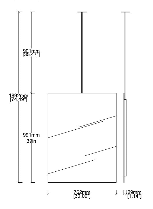 Mirror dimensions: 39” Height x 30” Width x 0.24” Thickness x 1.14” Overall depth (991 x 762 x 6 x 29mm)