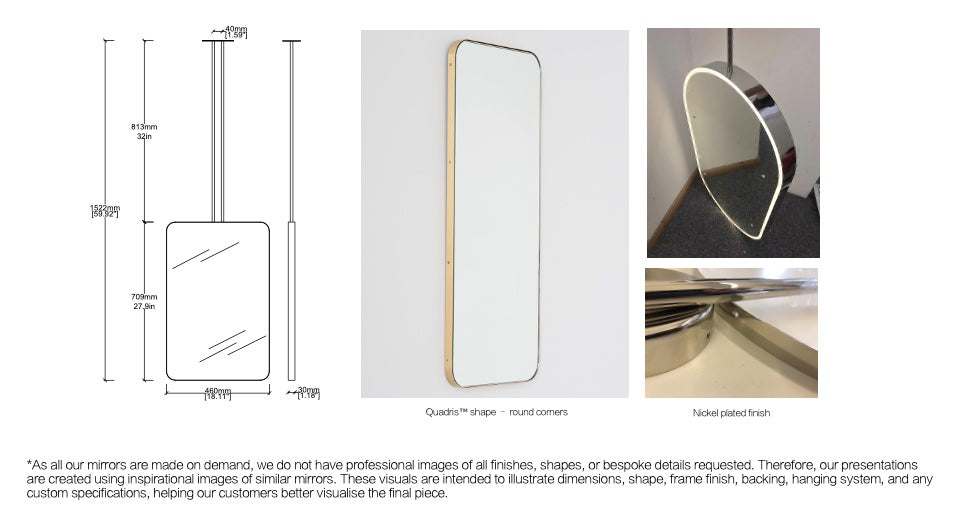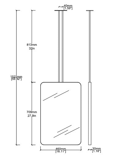 Mirror dimensions: 27.9” Height x 18.1” Width x 1.18” Depth (709 x 460 x 30mm)
