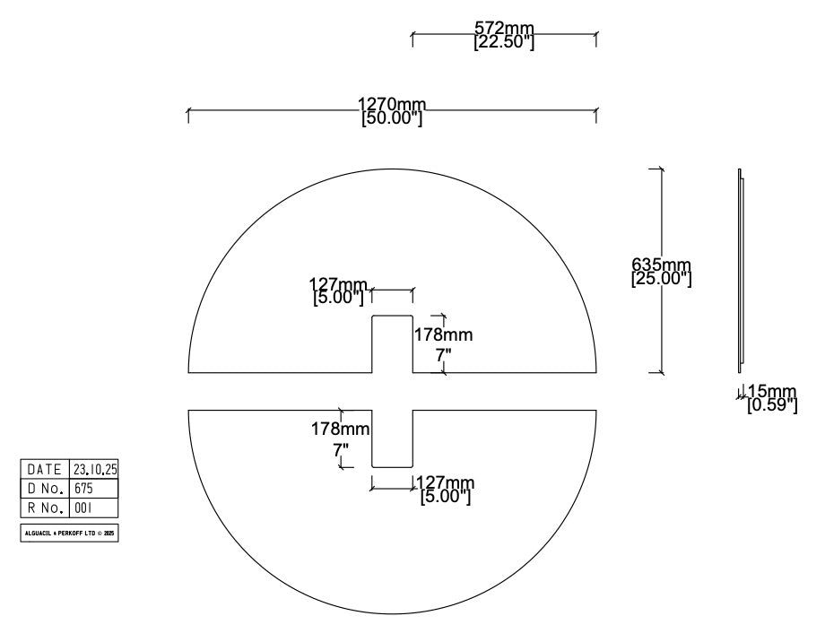 Set of 2 Bespoke Wall hanging Luna™ Mirrors – Half-Moon + Cut Out Bronze Tint Frameless (1270 x 635 x 6 x 15mm)