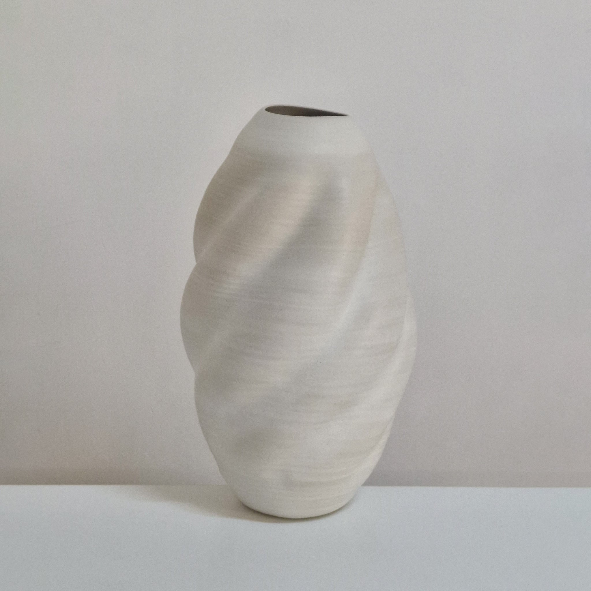 Vessel No. 162 tall wave white form vessel from ceramic artist Nicholas Arroyave-Portela.