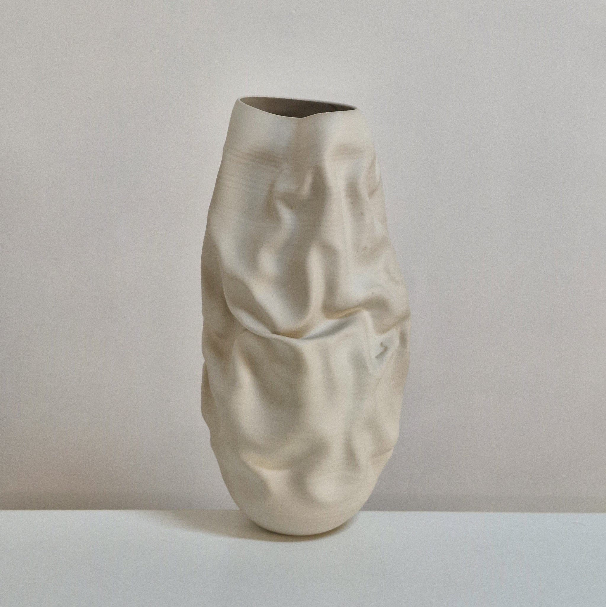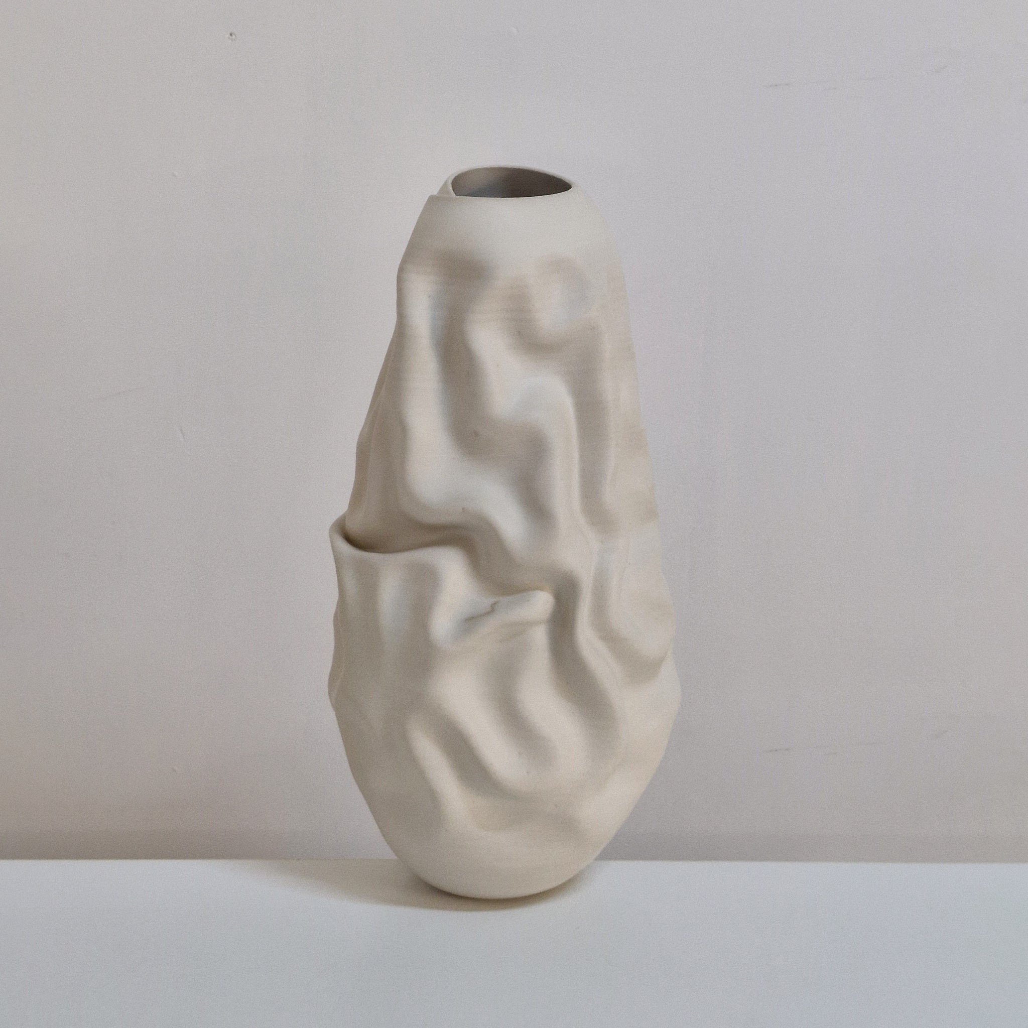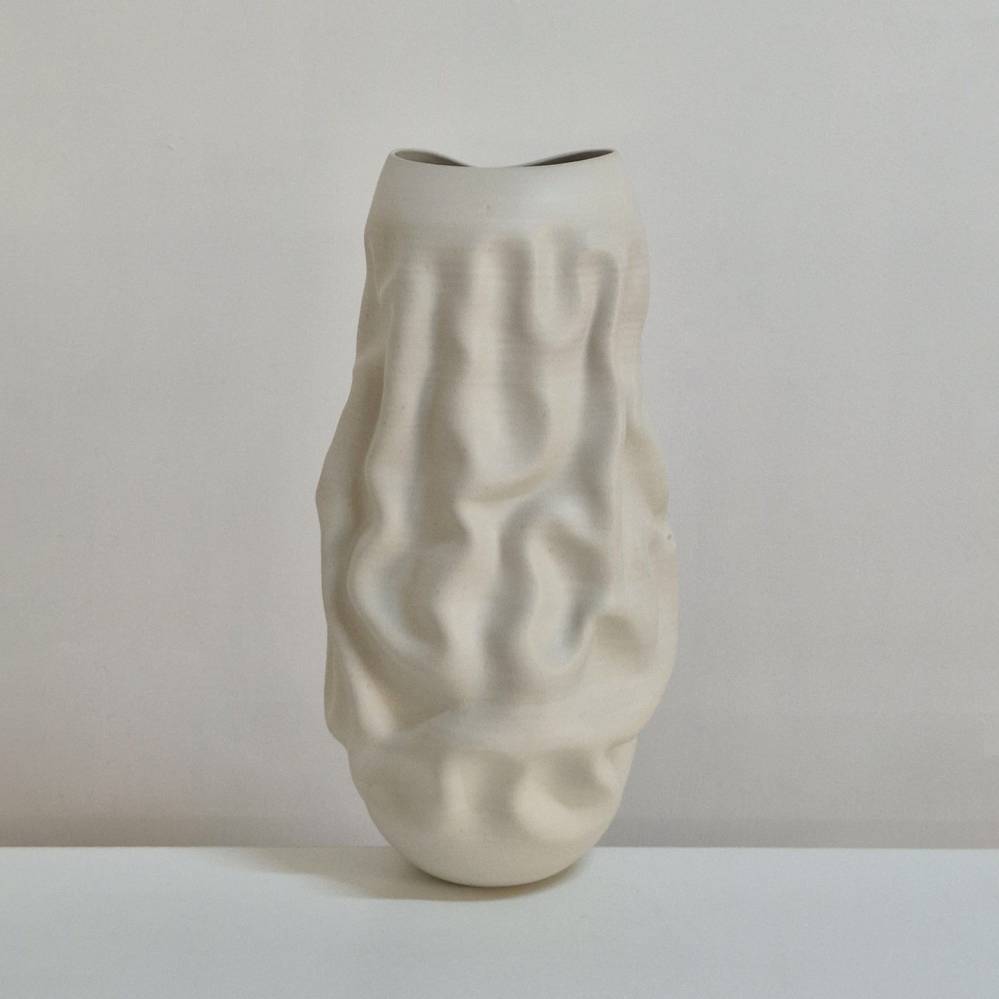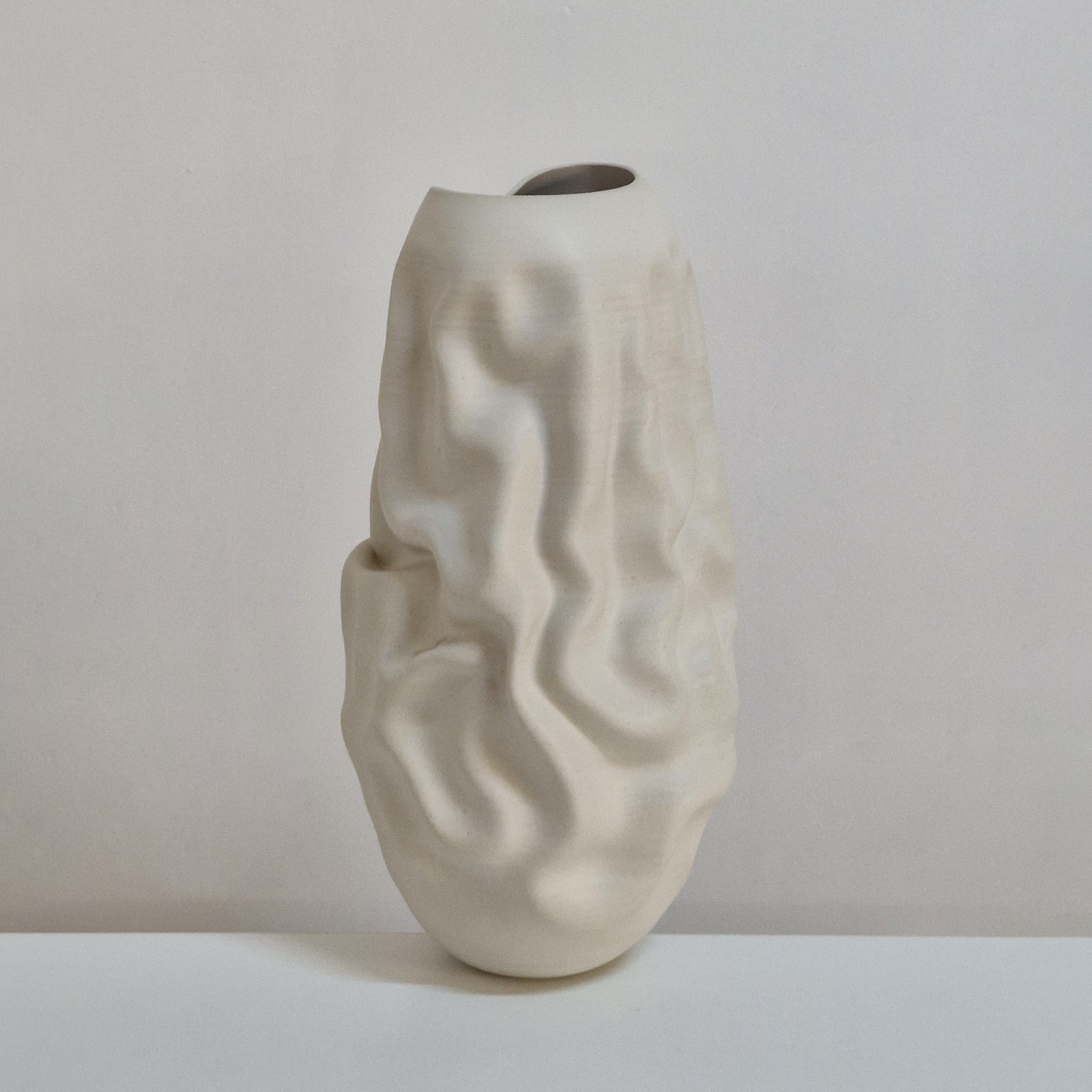Vessel No. 163 white irregular form vessel from ceramic artist Nicholas Arroyave-Portela.